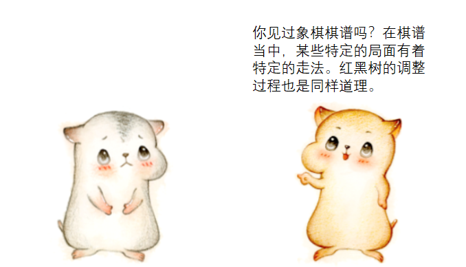 顺时针旋转红黑树的两个结点,使得父结点被自己的左孩子取代,而自己成为自己的右孩子。大家看下图:
