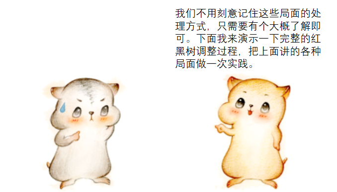 经过上面的调整,这一局部重新符合了红黑树的规则。