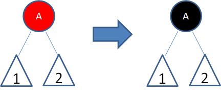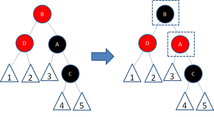 这种情况,我们直接让结点2的父结点A变成黑色,兄弟结点B变成红色: