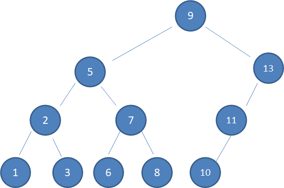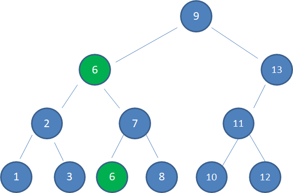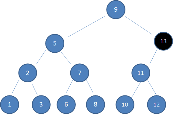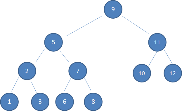 假设初始的二叉查找树只有三个结点,根结点值为9,左孩子值为8,右孩子值为12: