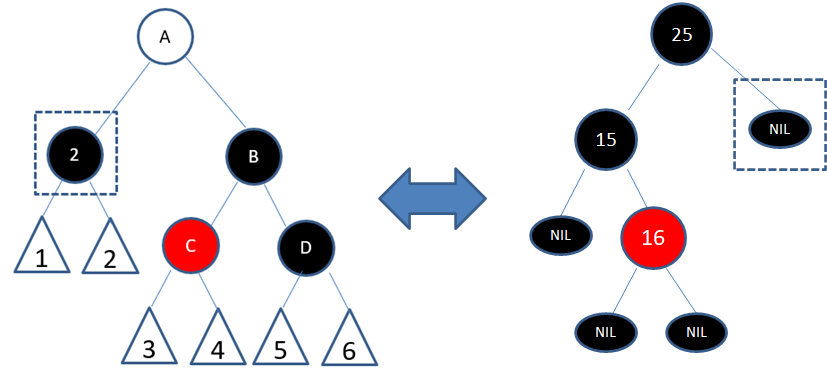 这样一来,结点2的路径补充了黑色结点,而结点B的路径并没有减少黑色结点,重新符合了红黑树的规则。