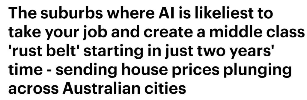 以悉尼Blacktown举例,该地区恐将有10340个工作岗位被AI取代。而当地的独栋屋价格往往要超过100万澳元,且大部分居民都背负着很大一笔房贷。