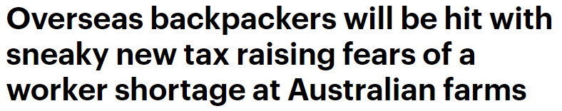 《每日邮报》6月27日报道称,前往澳洲的背包客将不得不为打工度假签证额外支付130澳元,这引发了人们对海外工人将被拒之门外的担忧。