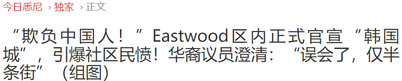 悉尼Eastwood区建“韩国城”,众多华人愤怒抵制