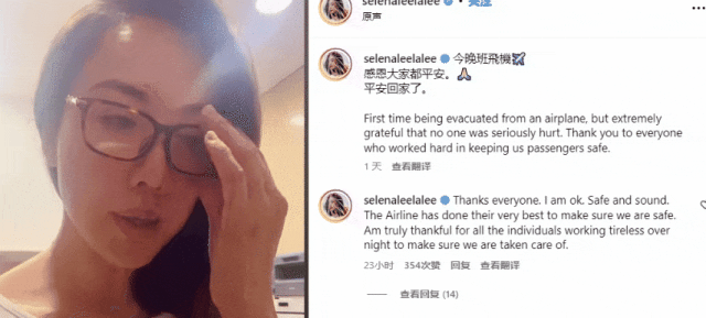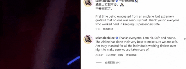 香港女艺人李施嬅也是这趟飞机上的乘客之一,下飞机后曝光了逃生过程中的混乱画面,并分享当时的感受。她直指“今晚系好惊险”!