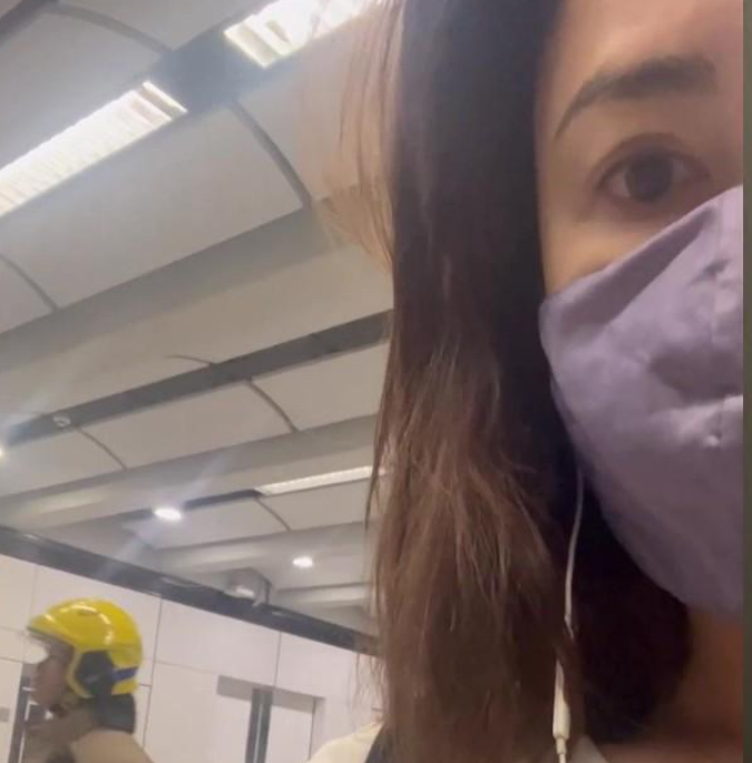 李施嬅跟随人群从逃生梯逃生,万幸的是她并没有受伤。晒出的视频中,