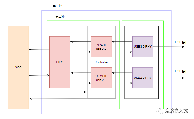目前市面上大部分主流usb 控制器采用第二种方式:即 CPU 从DDR 搬运数据到usb 控制器,然后通过usb phy 模型差分信号发送出去。
