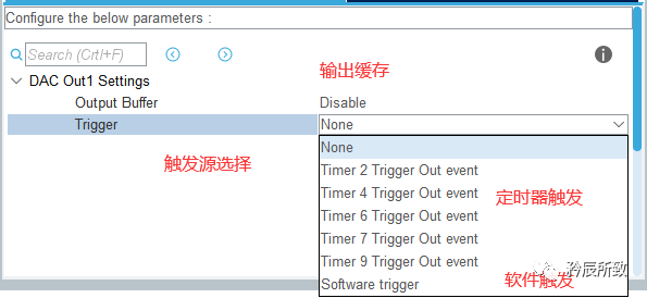 DAC 的基本设置,很简单,对于博主使用的 STM32L151 来说就只有2个选项: