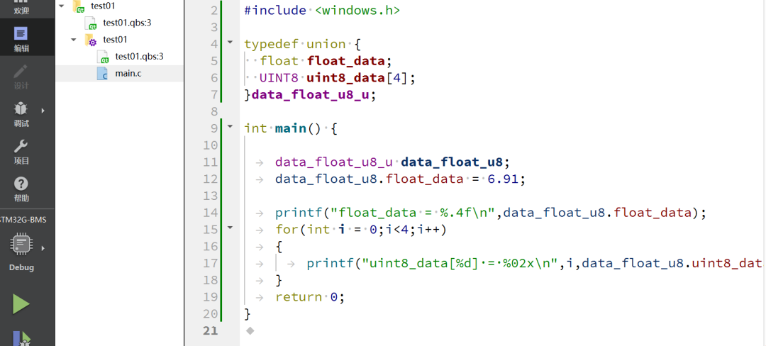 输入的浮点数是6.91,我们可以看到uint8_data也有了4个值,从联合体的定义来看,这两个值应该是一样的,我们来验证下是不是如此:
