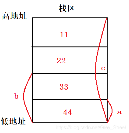 栈区遵循“先进后出、后进先出”的规则,即打印的时候从高地址到地址依次打印,所以test.c打印值为11223344。