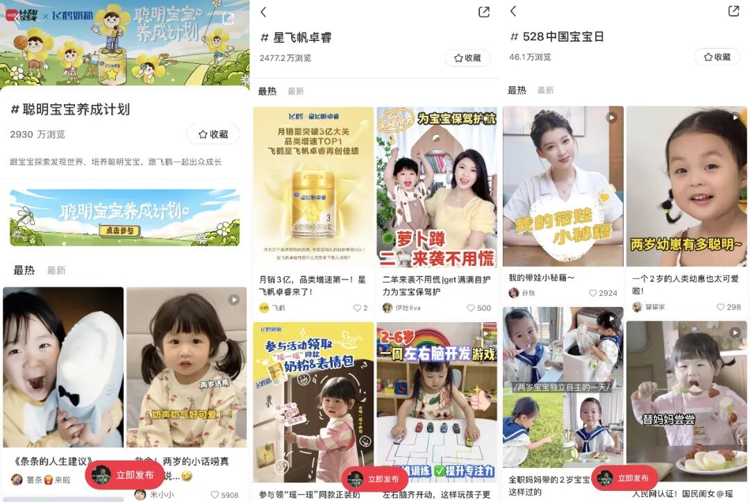 自2018年由中国飞鹤联合中国奶业协会、中国乳制品工业协会等二十多家单位联合确立以来,“528中国宝宝日”逐渐成为飞鹤品牌专属的节日IP,为更多年轻家庭提供了一个创造快乐、分享快乐的特殊场景。今年飞鹤和小红书更是强强联合,创新出击,以小红书母婴人群重要IP #小小美好探索家 为活动阵地,通过多样化内容运营以及线上活动话题 #聪明宝宝养成计划 ,借助小红书站内友好的社区氛围、优质的宝藏KOL帮助客户输出品牌信赖态度,打造活动声量,为品牌聚势赋能,乘势而上,强势抢占行业风口!