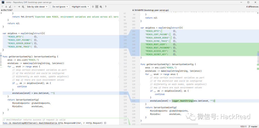 给出了补丁的commit https://github.com/minio/minio/commit/3b5dbf90468b874e99253d241d16d175c2454077