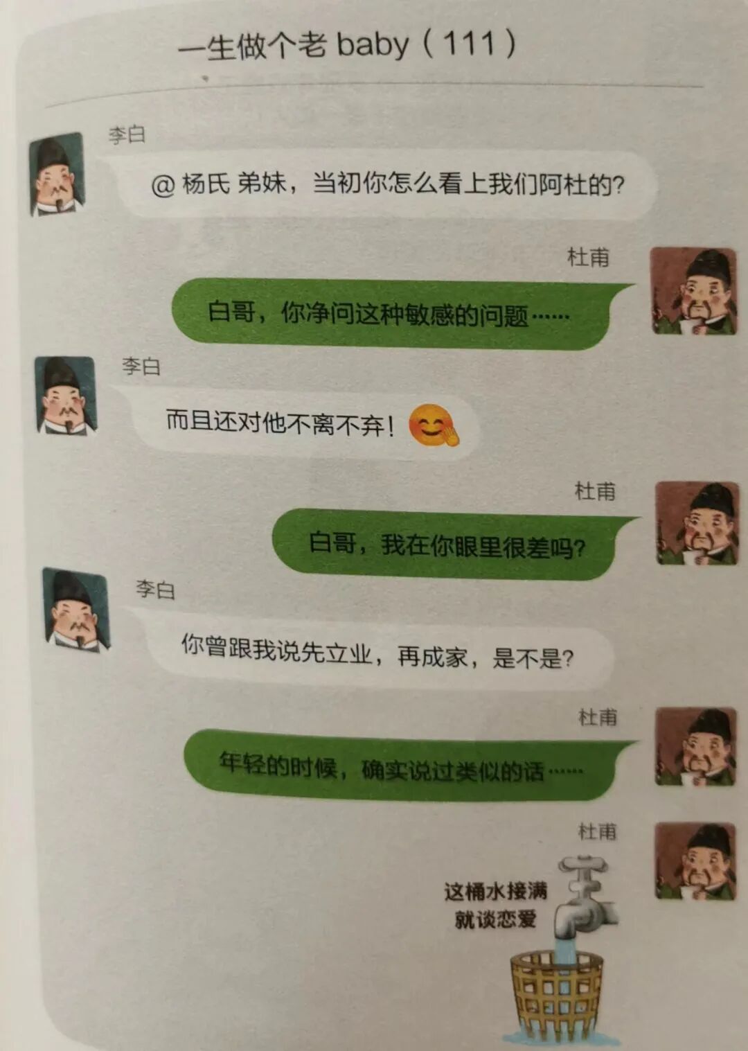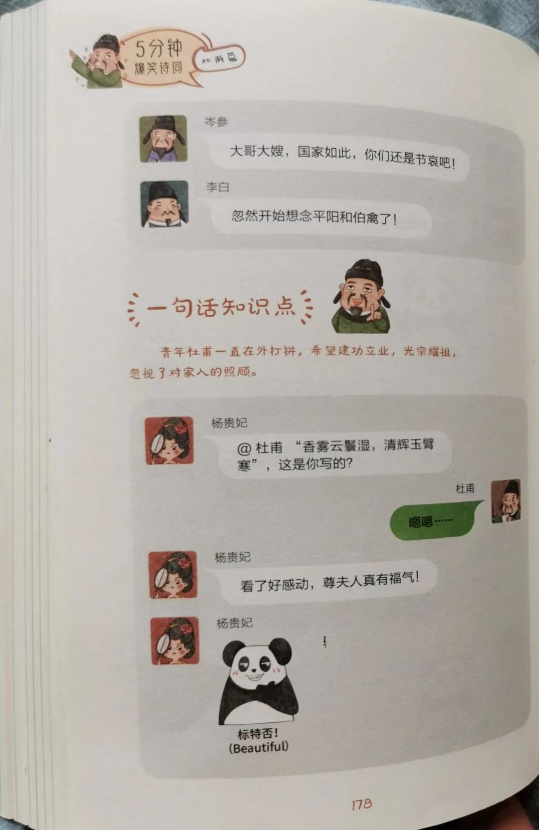 杨贵妃:@杜甫 “香雾云鬟湿,清辉玉臂寒”,这是你写的?(标特否:英文beautiful的读音,即“美好的”)唐玄宗:![]()