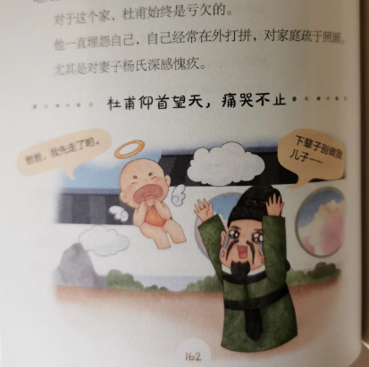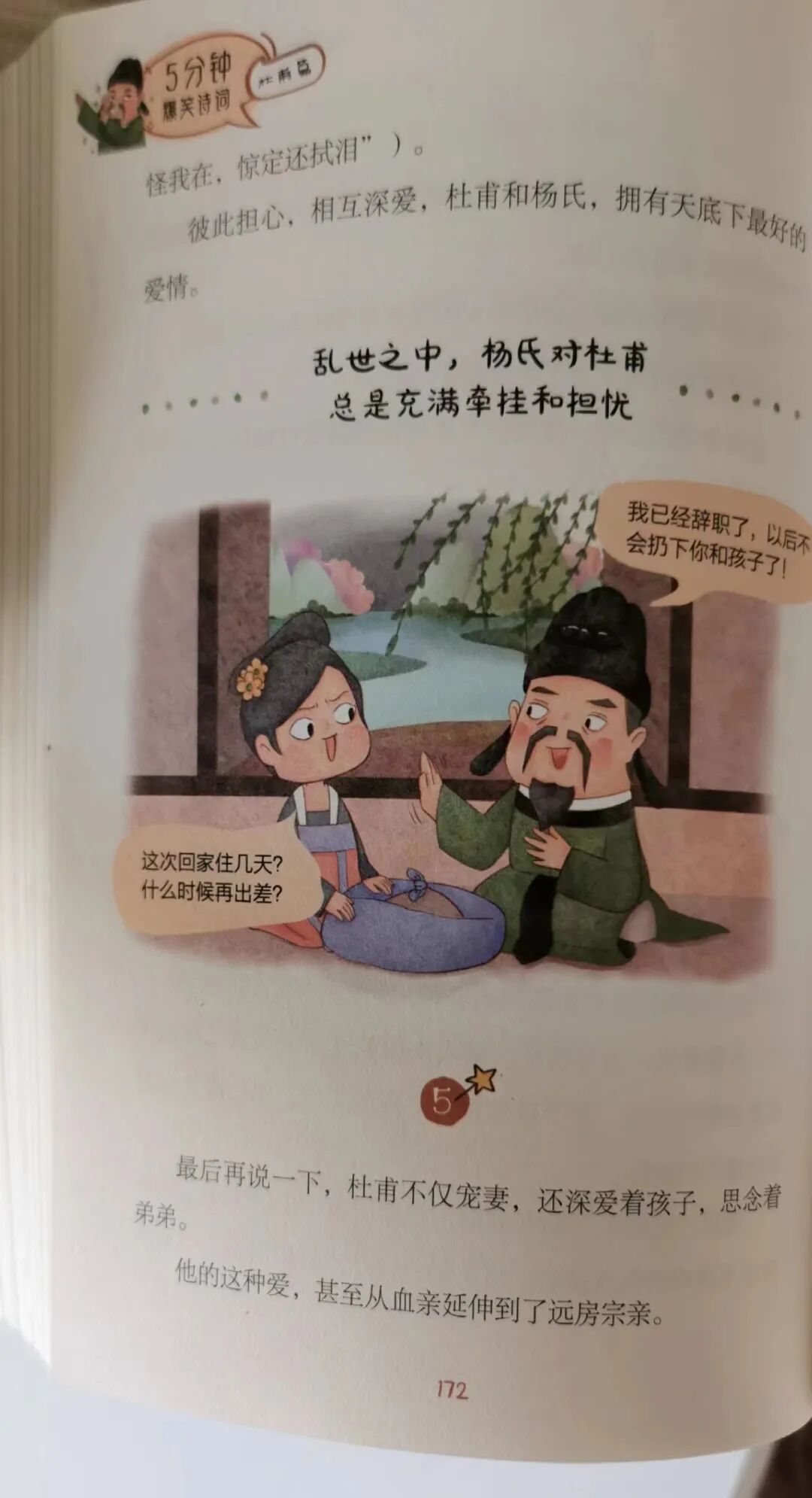 杨氏突然发现站在面前的“我”,一下子惊呆了,忽然分不清眼前是真是幻,人身安全是否能有保障。彼此担心,相互深爱,杜甫和杨氏,拥有天底下最好的爱情。