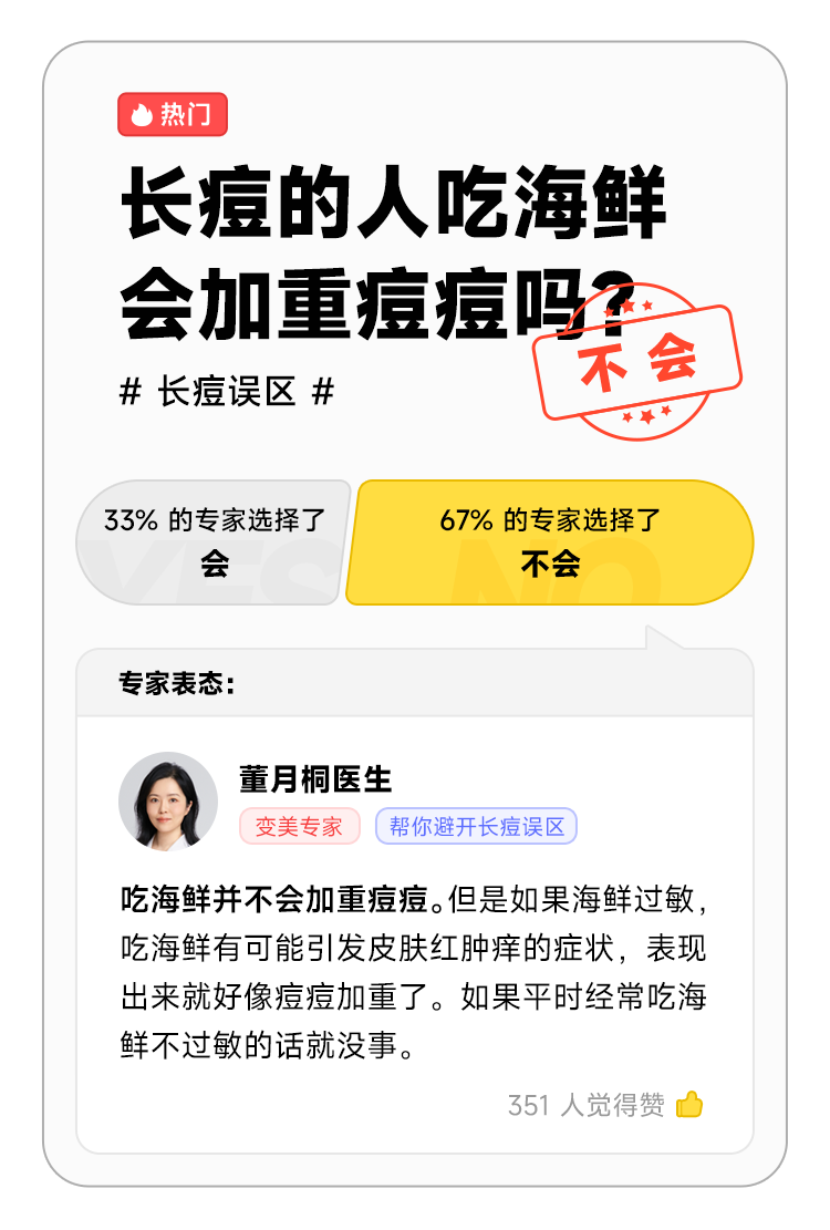 说法一:长痘期间要忌口,不能吃海鲜等。