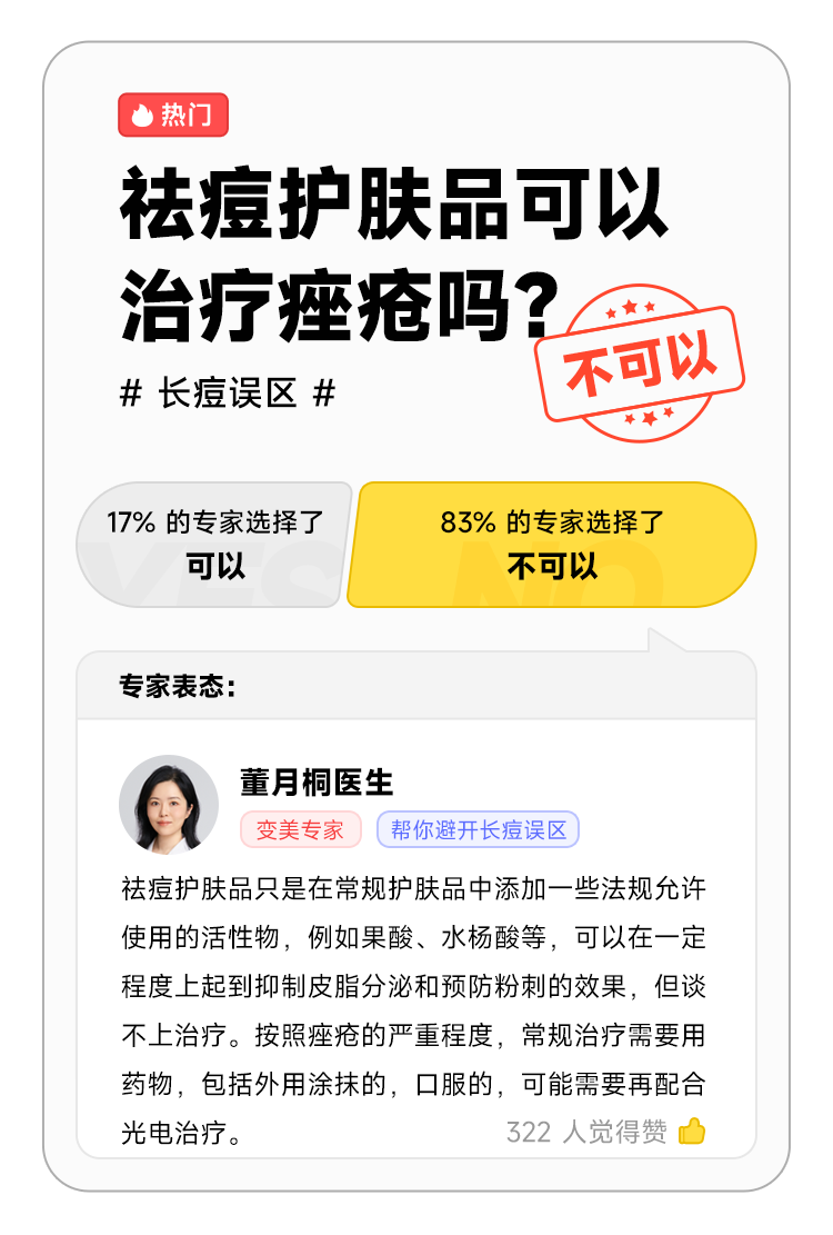 说法三:市面上那些有「祛痘」功效的护肤品,用了就可以治疗痤疮。