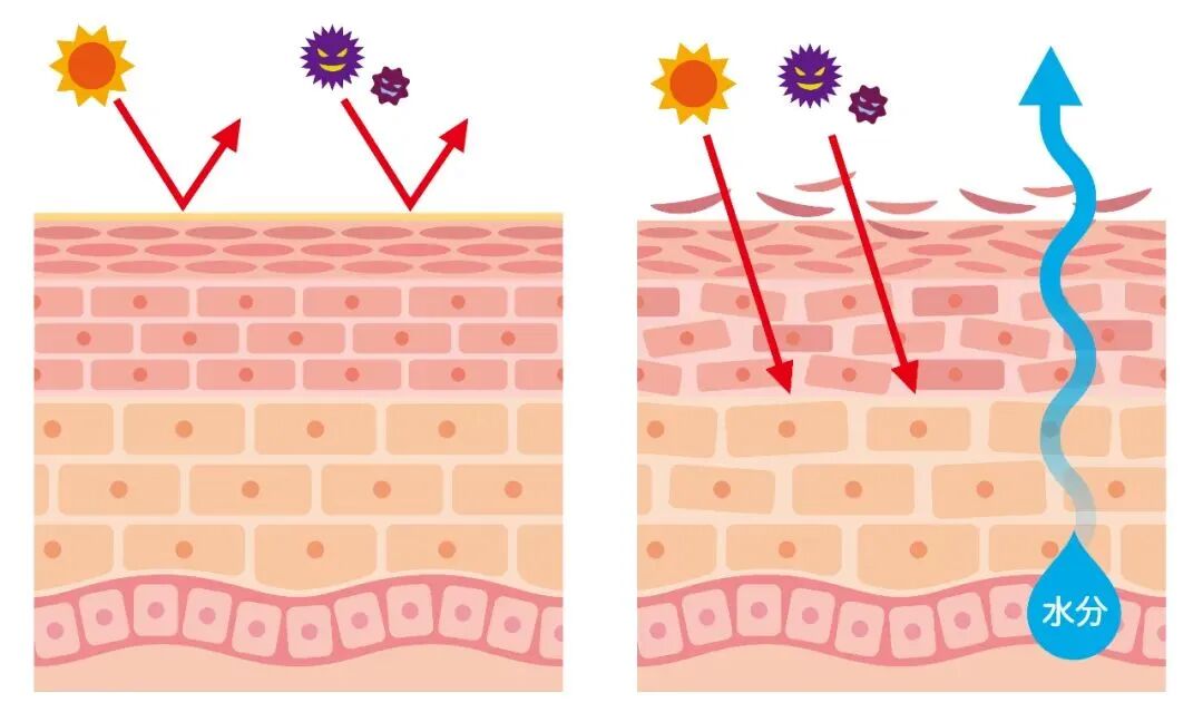 健康状态下,我们的皮肤上天然有一道屏障,阻挡、抵御外界有害物质的侵袭。