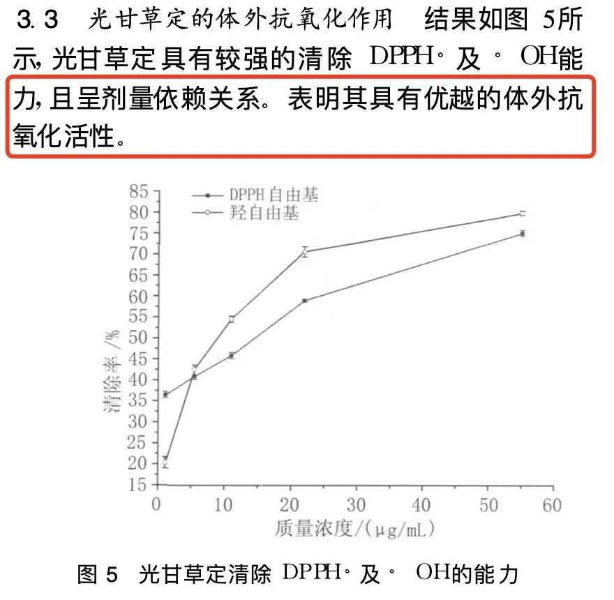 光甘草定在实验条件下,具有较强的清除多重自由基能力,从而减少体内自由基过量导致的皮肤氧化暗沉[5],有助于去黄气,让脸蛋提升光泽感,恢复好气色*。