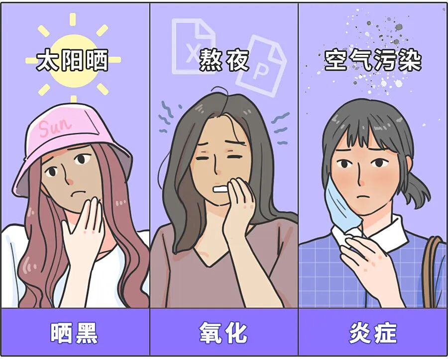 除了黑色素形成、堆积引发的脸黑以外,多种因素引起的自由基肆虐,皮肤炎症导致的色素沉着,都会让脸看上去变黑、显脏。