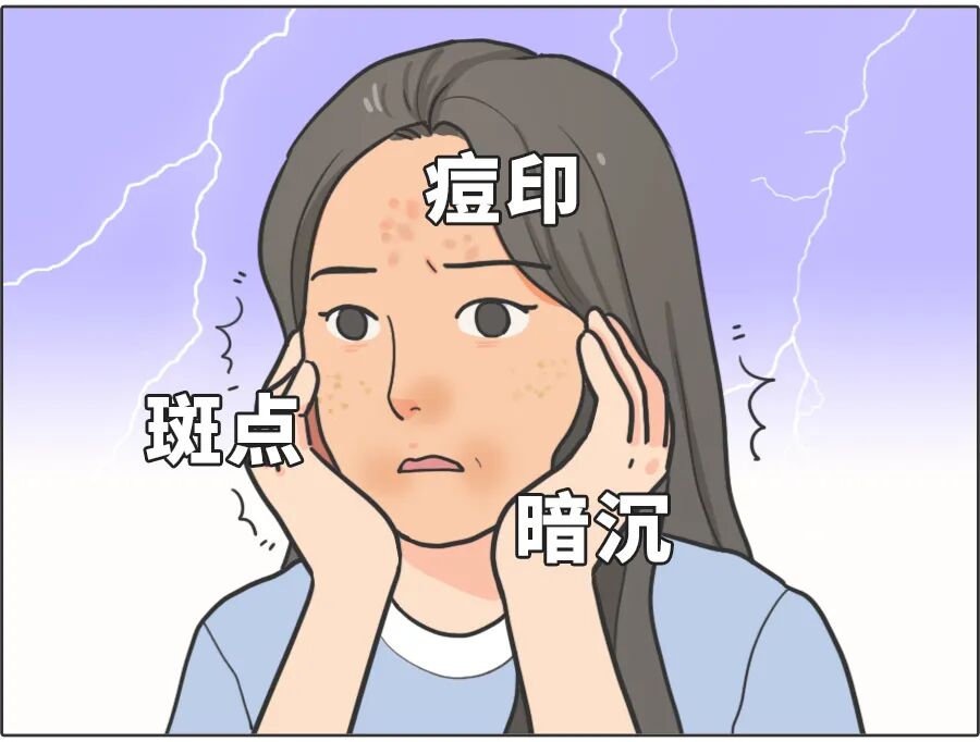 不白也就算了,脸还总有些小问题:额头留痘印、两颊长斑点、鼻翼嘴角暗沉,整张脸像调色盘一样,看起来脏脏的。