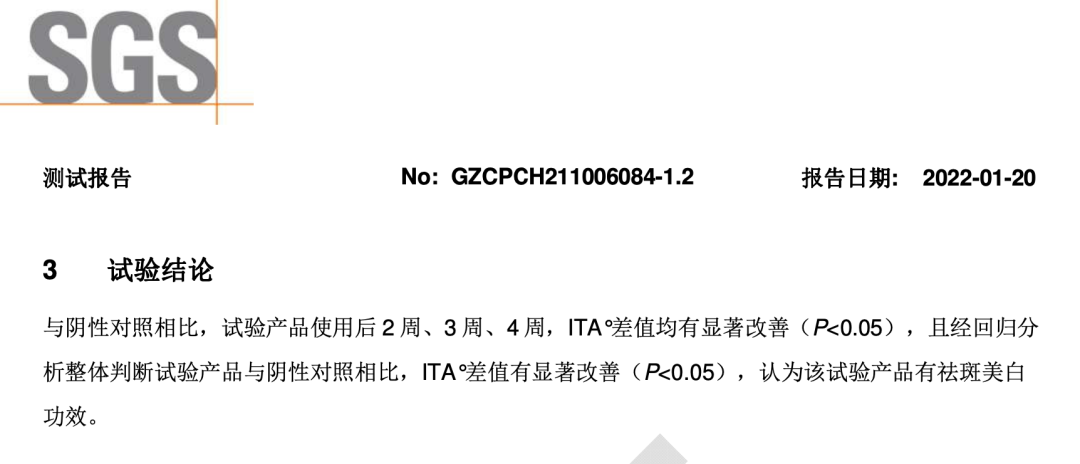 有品牌曾联合 SGS 进行人体功效实验,发现受试者使用 0.04% 浓度的光甘草定美白产品 2~4 周,ITAº 值(皮肤白度)有显著改善。