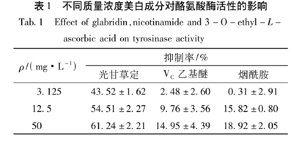 在 3.125 mg / L 浓度的实验条件下,光甘草定对酪氨酸酶抑制率,是传统美白成分烟酰胺的 140 倍,是 Vc 乙基醚的 17.5 倍[4]*。