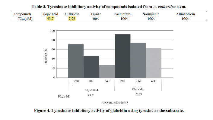 有研究发现,在实验条件下,光甘草定对酪氨酸酶的抑制率,是美白标准曲酸的 15 倍[2]*。