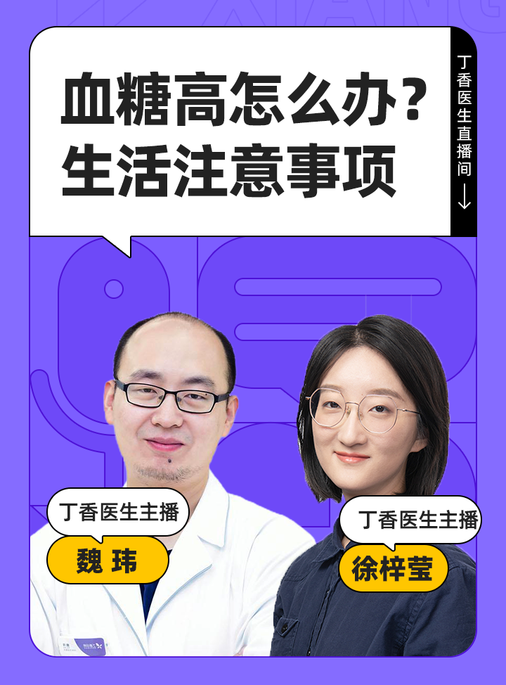 今晚 20:00 点,丁香医生直播间,魏玮医生和徐梓莹老师将一起跟大家聊聊《高血糖和糖尿病》的话题,我们不见不散!