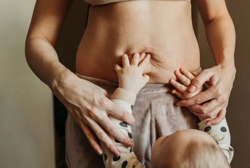 本来光滑的肚皮,长满了妊娠纹;时不时会有漏尿的情况出现;宝宝喝奶饱饱的,换来的是不再挺拔的乳房,以及会发现生娃后,肚子中间摸起来像有一个「窟窿」。