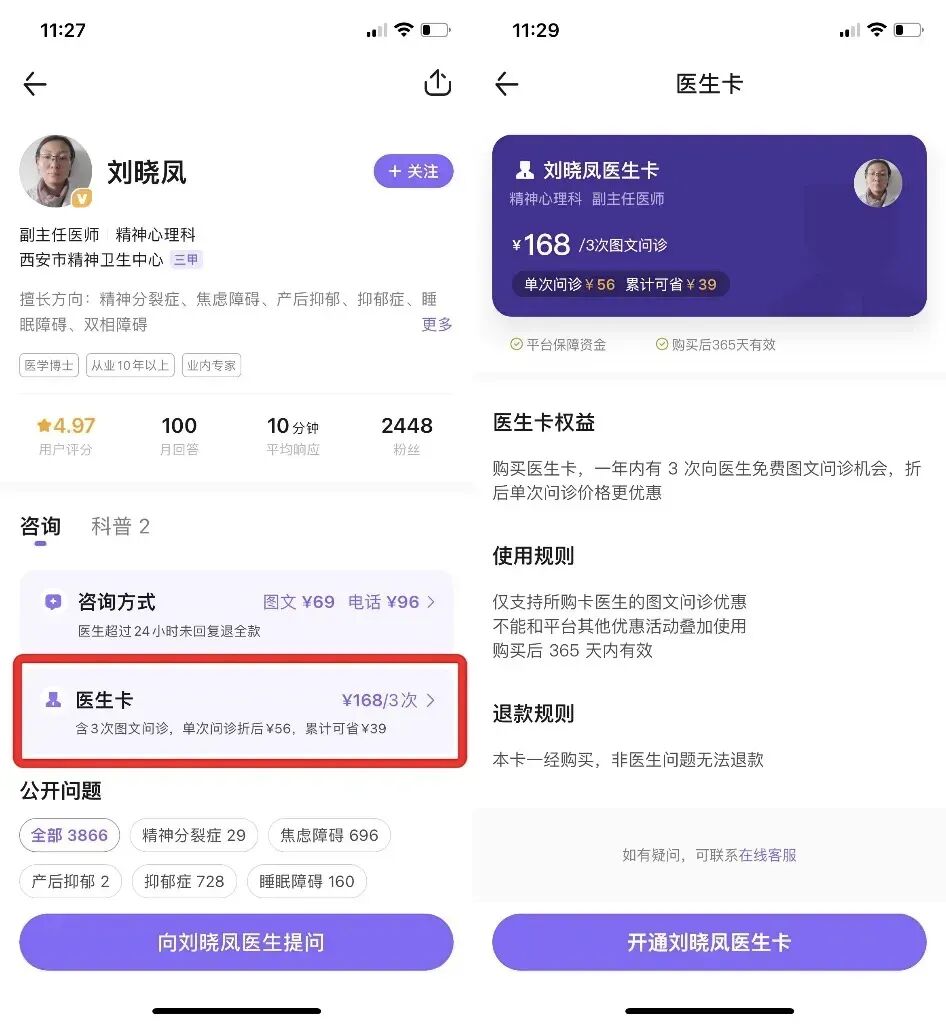 相比每次单独咨询,使用医生卡妥妥省出几杯奶茶咖啡钱。如果你有多次咨询需求,这样的优惠可别错过啦!