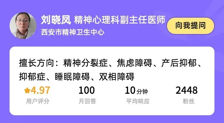 但解决情绪问题,不会一蹴而就。如果你或你的家人遭遇反复的精神压力,时常需要医生答疑解惑,推荐关注一下刘晓凤医生的医生卡服务,可以快速联系到医生,并享受问诊优惠,还挺方便的。