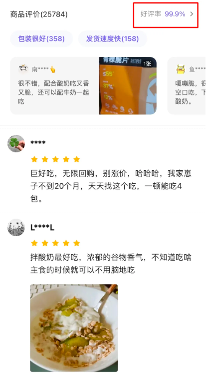 没吃过的朋友别着急,别的不说,先看看这好评率、这回购率,光是看这些评论,就已经忍不住来一口了。