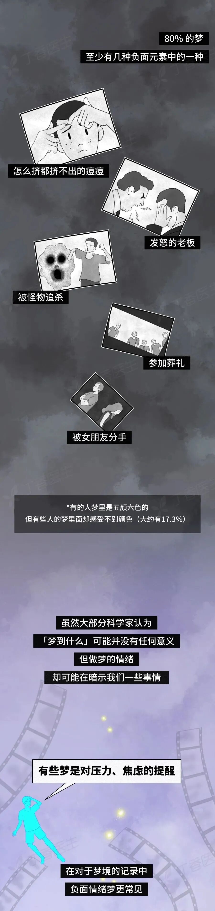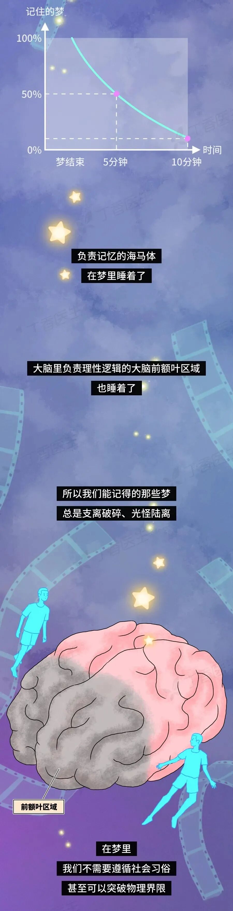 一种说法认为:一个普通人经典的一生会做 6 年的梦,也就是每晚 2 小时,每个梦长长短短在 5~20 分钟左右。这其实参考的是 REM 快速眼动期计算得出的,大部分人在这个阶段被叫醒都在做着生动的梦。