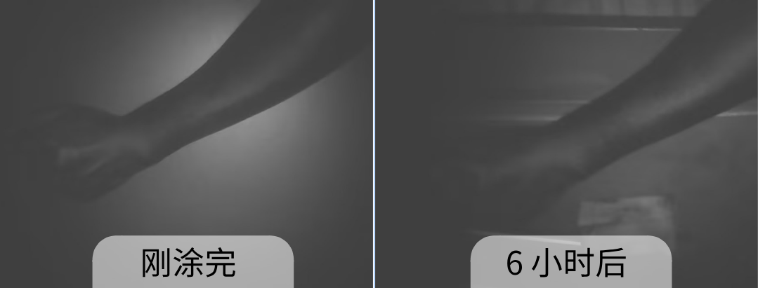 我们自测时同样取一指的量涂上实测,在下午两点半到晚上总计户外游玩了 6 个小时,菲古思的防晒力依旧坚挺。