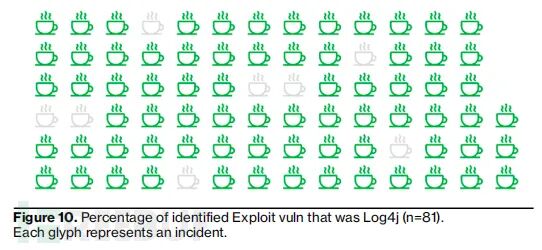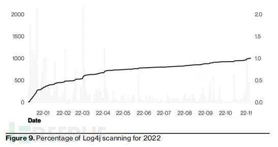 在过去的一年中,超过32%的Log4j扫描活动发生在其发布后的30天内(最大的活动高峰发生在17天内)。Log4j是如此重要,以至于和其相关事件在评论部分都有“Log4j”或“CVE-2021-44228”。但是,只有20.6%的事件有评论。
