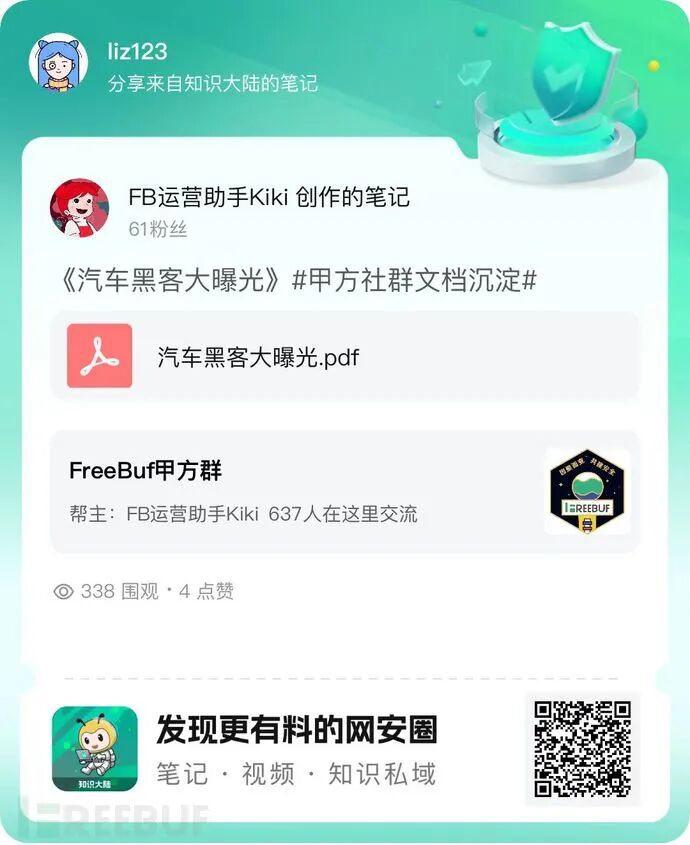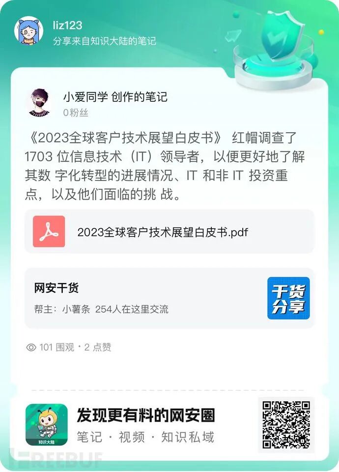 各位读者周末好,以下是本周「FreeBuf知识大陆一周优质资源推荐」,我们精选了本周知识大陆公开发布的10条优质资源,让我们一起看看吧。![]()