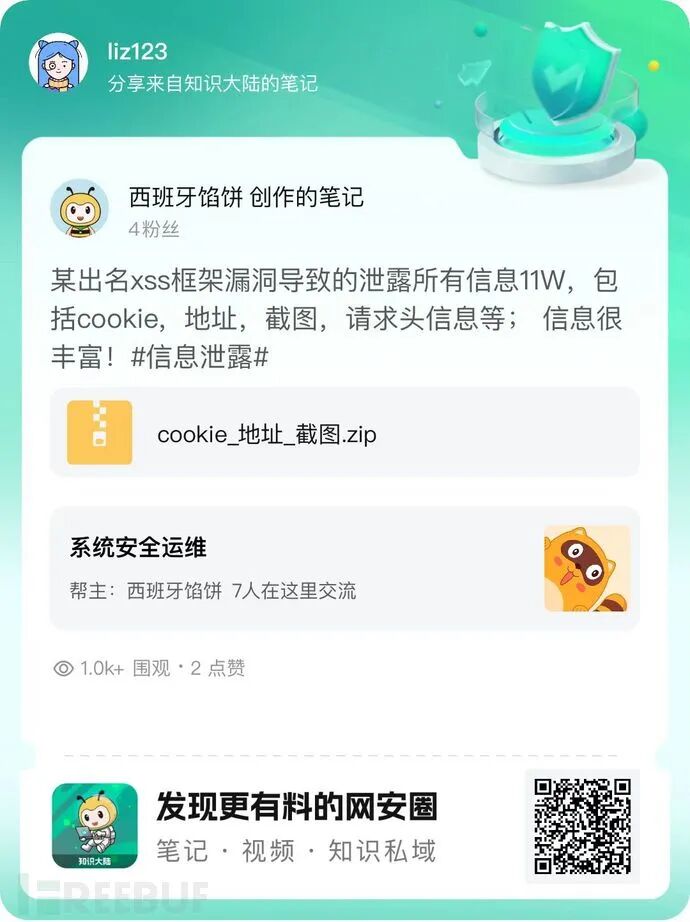 某出名xss框架漏洞导致的泄露所有信息11W,包括cookie,地址,截图,请求头信息等; 信息很丰富!![]()