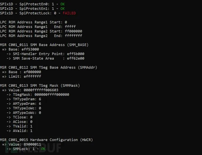1、转储与安全相关的平台注册表信息:Flash、MMIO、SSM、MSR;