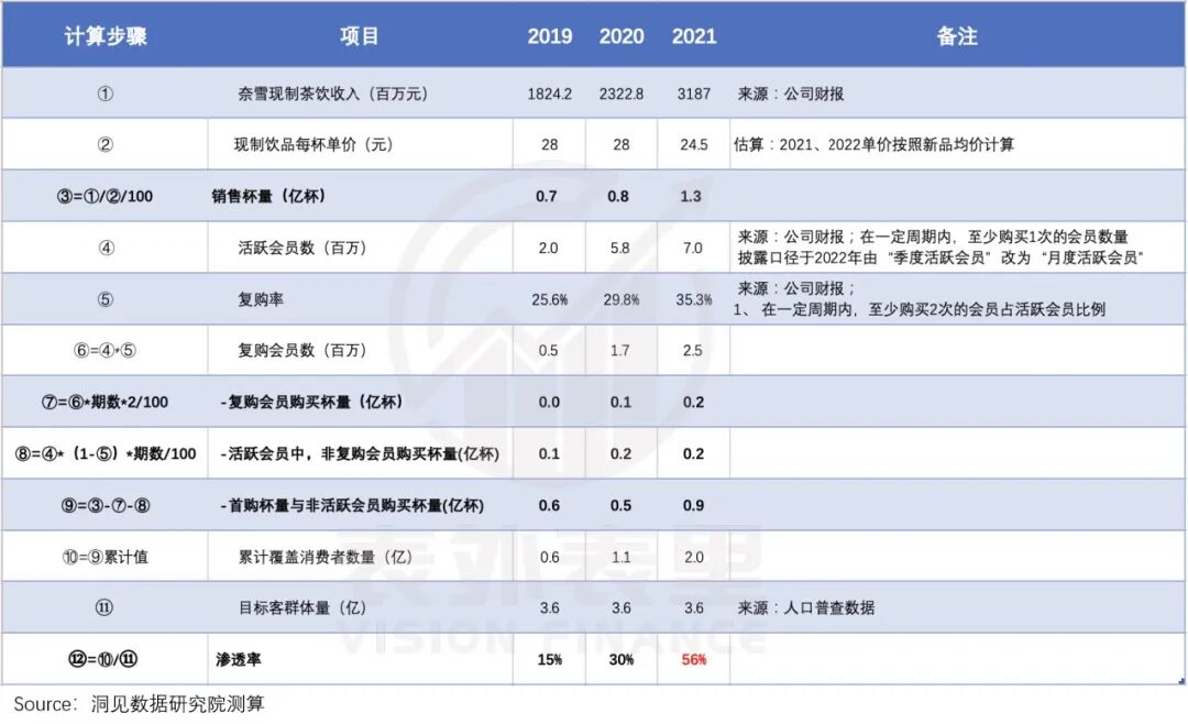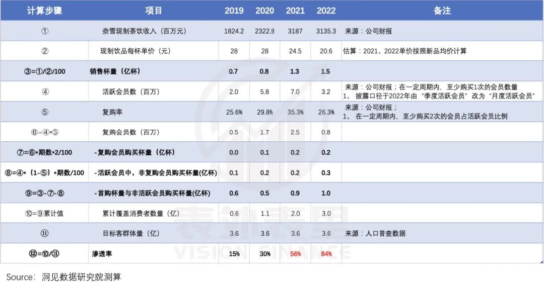 反馈在数据上,套入前序测算,可以发现到2022年底,奈雪的茶渗透率已经达到80%以上。